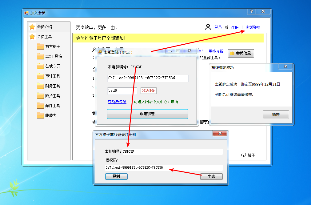 安装方方格子Excel工具箱离线包后使用注册机激活即可