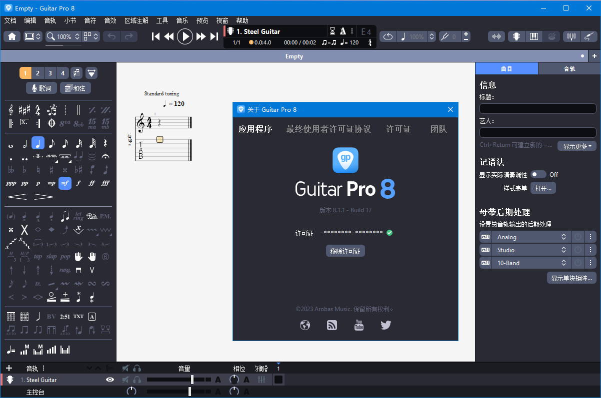 Guitar Pro v8.1.3 Build 121 Win/macOS 中文破解版下载/多语言便携版(专业吉他打谱看谱软件)