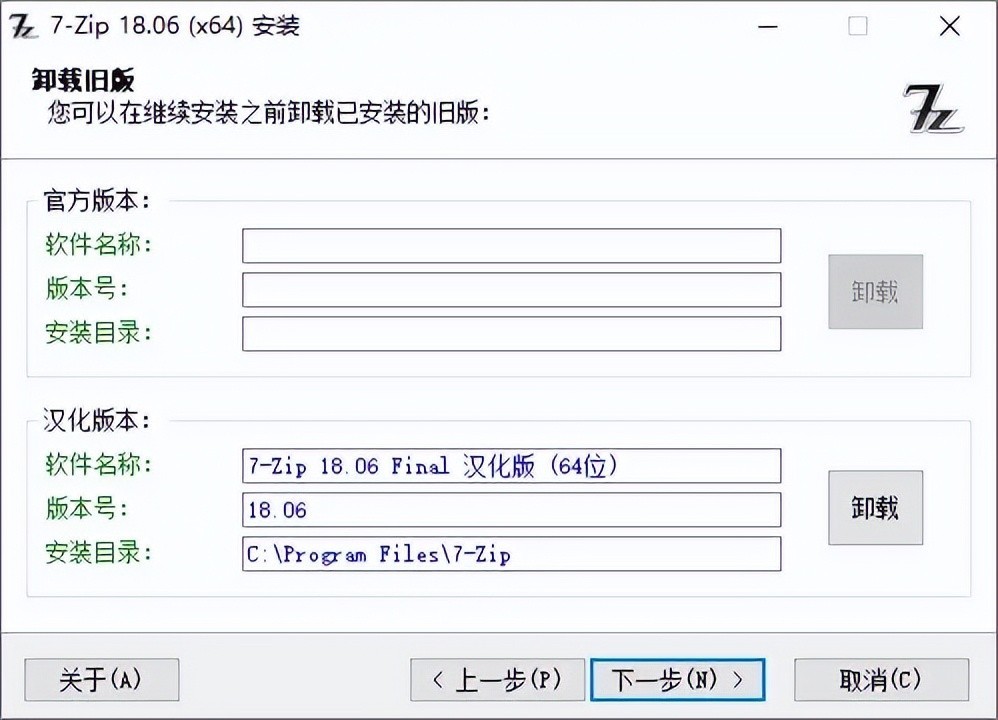 提示:更新该软件请尽量卸载后重启系统再安装,至少至少要先卸载再安装,因为 7z.dll 会被系统占用无法删除或者覆盖。