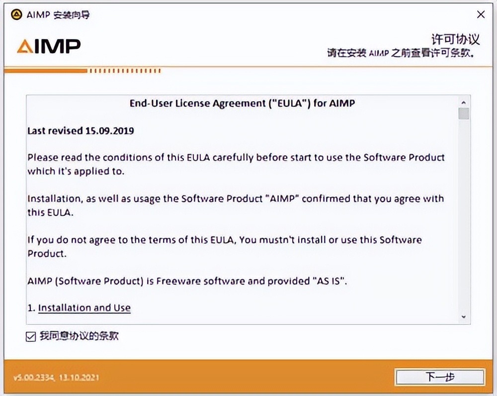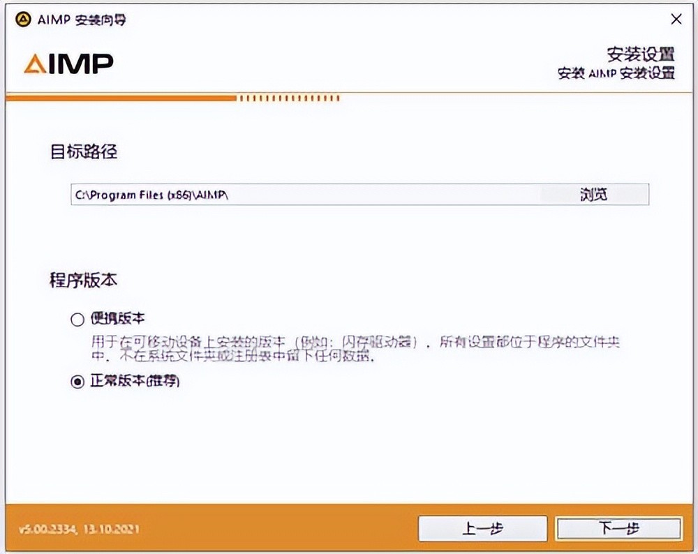 4、选择目标路径,默认【C:\Program Files (x86)\AIMP\】,程序版本默认正常版本,点击下一步;