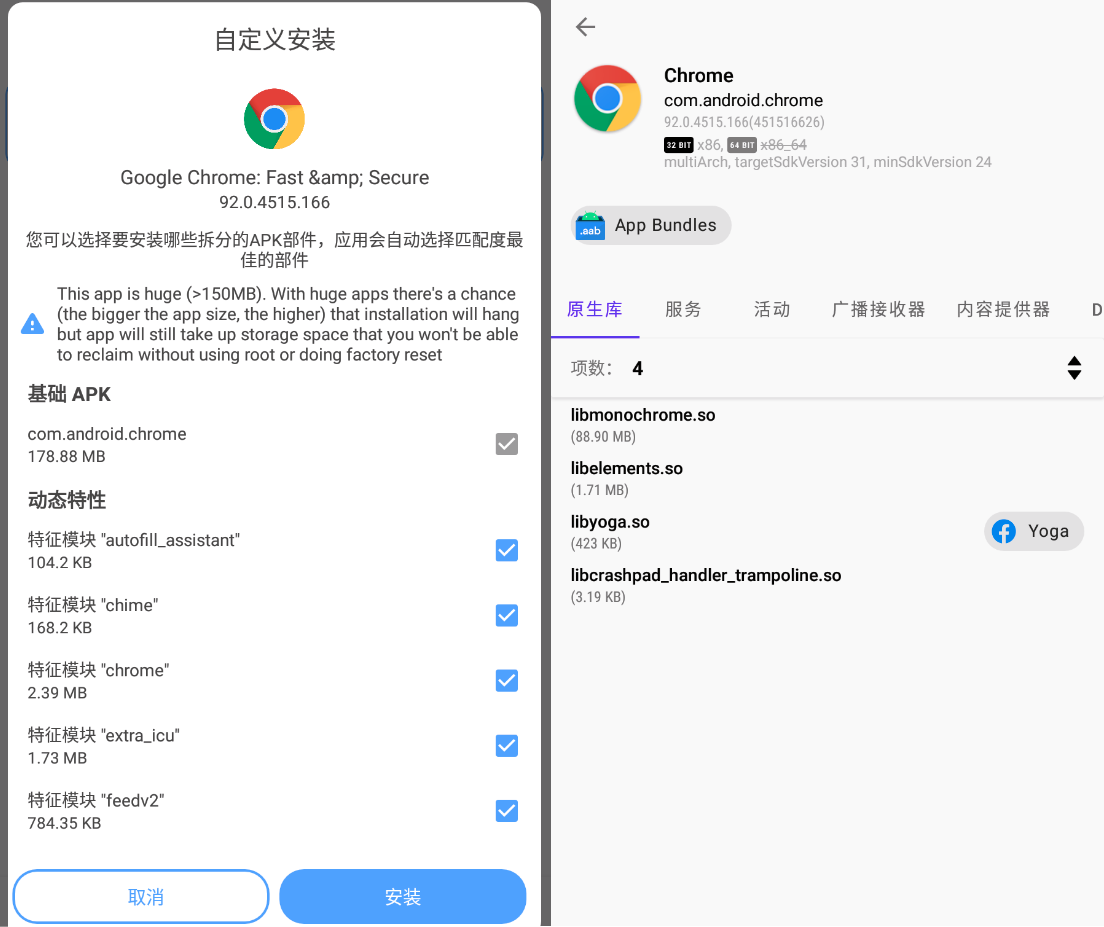 这些特征模块组件以apks或apkm格式合并打包,可以采用 SAI安装器 安装。