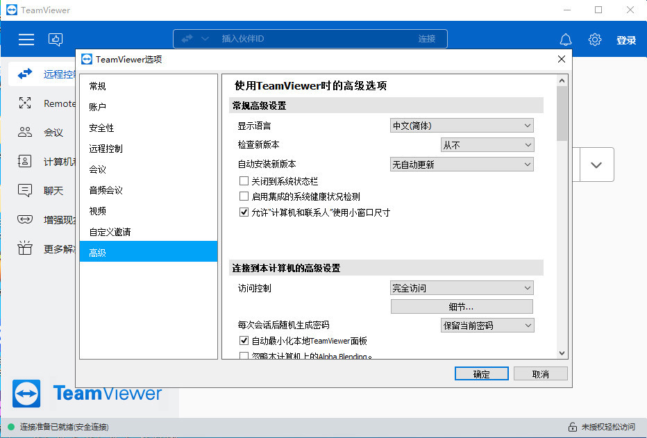 中文说明:选项-高级-显示高级选项-语言选择”简体中文”-确定-提示重启TeamViewer,应用新的显示语言。