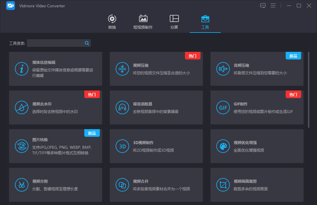 Vidmore Video Converter是一款十分好用的视频格式转换软件,软件能够转换多种视频格式,有非常好的视频处理功能,支持海量的视频格式,并且还支持对视频进行简单的剪辑制作,还有着多种的工具帮助用户对视频进行处理。