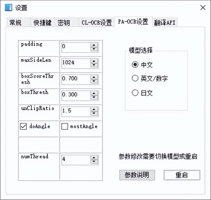 天若OCR文字识别工具本地版是一款在天若OCR文字识别工具v5.0免费开源版的基础上采用Chinese-lite框架和Paddle-ocr框架本地化识别接口编译而成,无需联网也无需申请密钥,纯本地运算,识别准确度和速度很快。操作和天若OCR免费版一样,F4是截图、可以翻译、段落合并等,推荐使用Paddle-OCR识别,可以在识别结果切换接口。