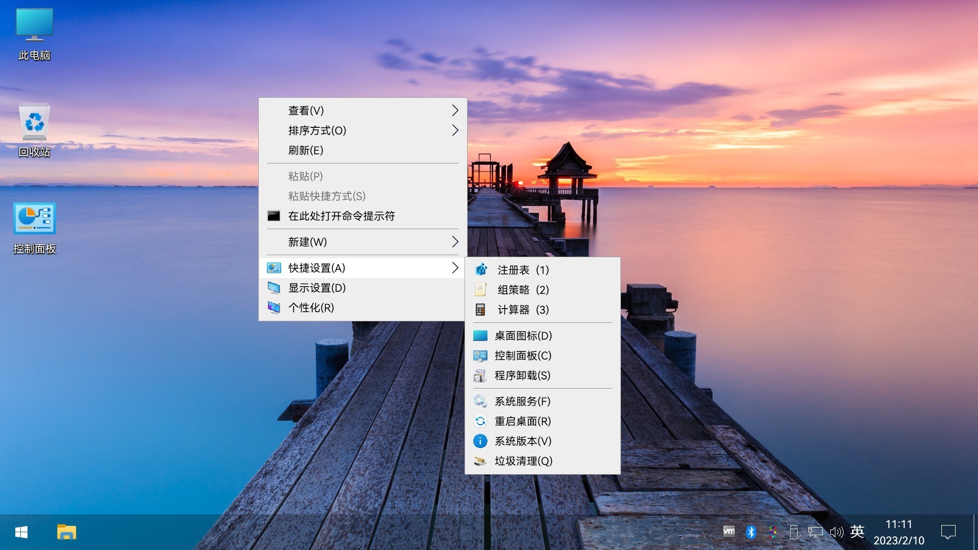 集成右键 快捷设置 包含 注册表 组策略 计算器 桌面图标 控制面板 系统服务 重启桌面 系统版本。