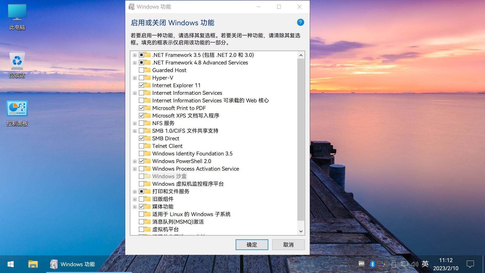 保留组件:打印、任务栏搜索、蓝牙、指纹、人脸识别、共享、微软账户、计算器、屏幕投影、平板模式、BitLocker、远程桌面、IE浏览器、IIS 、NFS 、IE浏览器、画图、截图、防火墙、WMP、旧版组件 、hyper、Linux、Telnet