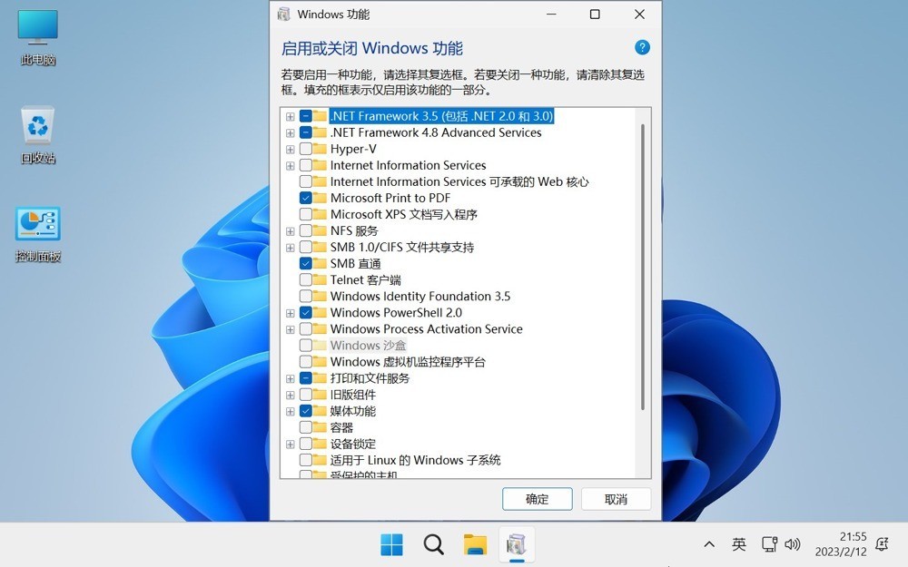 保留组件:打印、蓝牙、指纹、共享、微软账户、搜索、计算器、屏幕投影、平板模式、BitLocker、远程桌面、IIS 、NFS 、IE浏览器、画图、照片、截图、防火墙、WMP、旧版组件 、hyper、Linux、Telnet