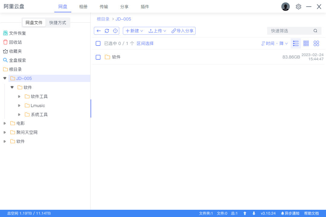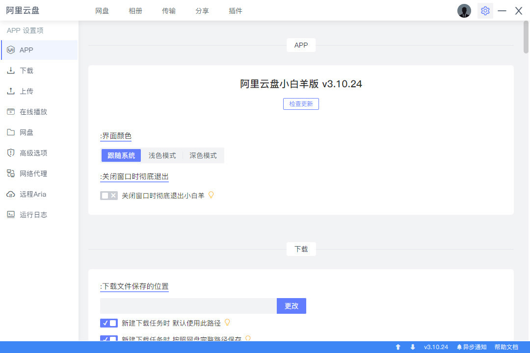 阿里云盘小白羊版 v3.24.30410 最新免安装绿色版(阿里网盘PC客户端)