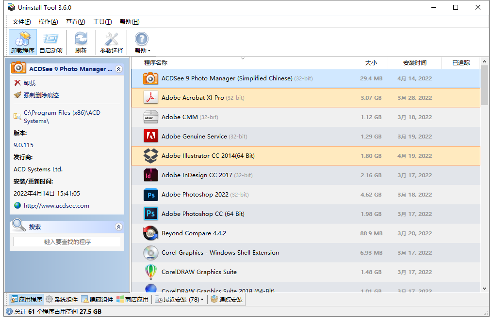 - 比”添加/删除程序”快3倍!2. 3个应用程序分类:软件,系统和隐藏