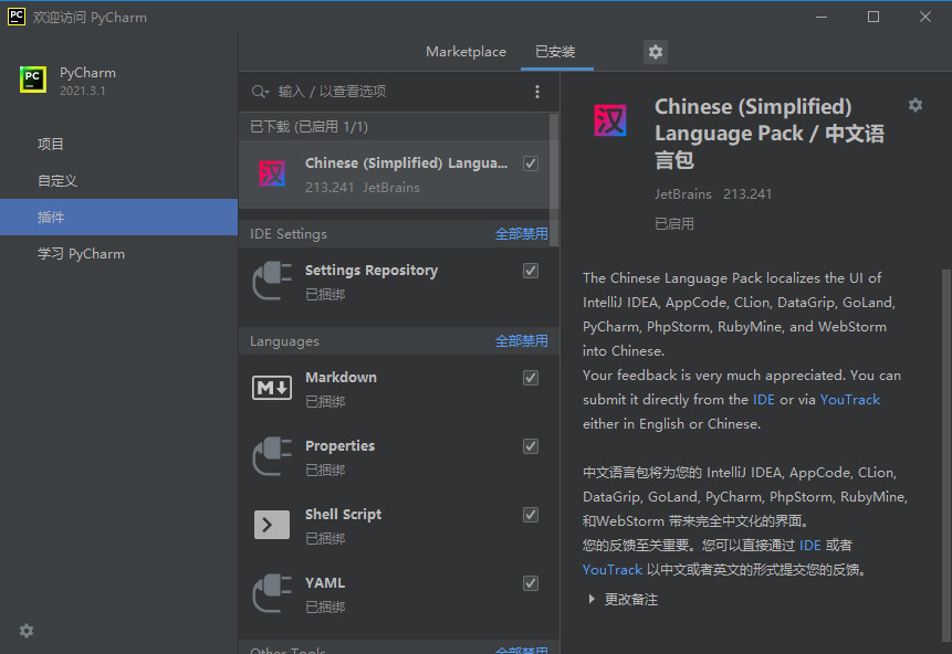 JetBrains产品官方中文语言包插件 2024.1.x v241.230 Update (2024/04/16)