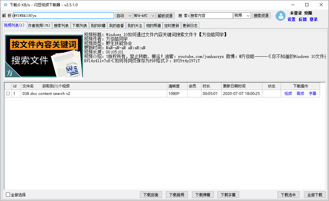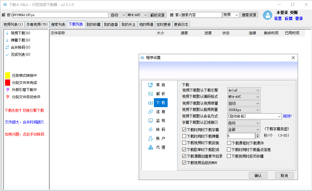 闪豆视频下载器是一款强大的视频下载工具,支持多视频站平台解析,支持批量下载、转码自动合并,登录网站账号,解析下载会员视频,例如B站还能同步账号信息,一键批量下载关注的视频、收藏列表、番剧等。