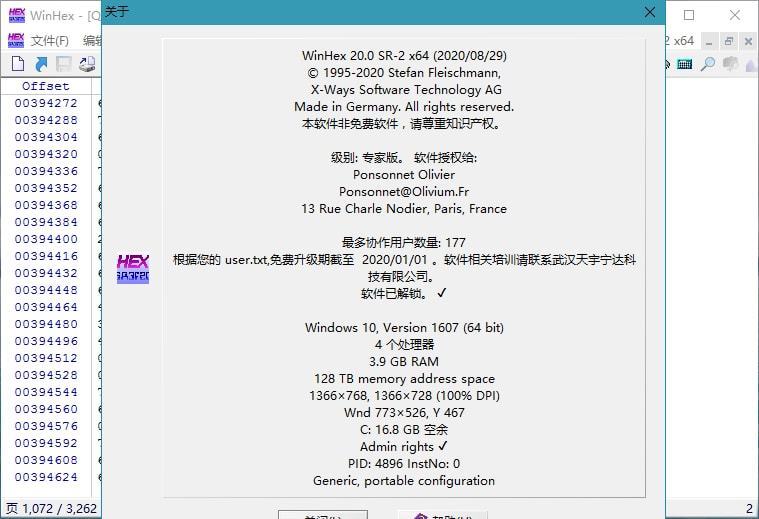 WinHex中文破解版 v21.4 / v20.8 SR-4 解锁专家版 (绿色版单文件)