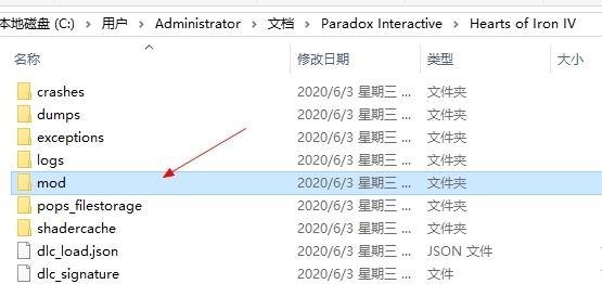 3、打开我的电脑\文档\Paradox Interactive\Hearts of Iron IV\mod,如果没有mod文件夹就创建名为mod的文件夹