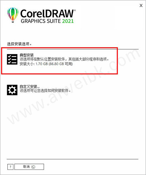 需要Internet连接才能安装和认证CorelDRAW Graphics Suite并访问其中包括的某些软件组件,在线功能和内容。