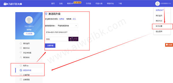 1、先登录账号,按下图步骤进入升级账户界面: