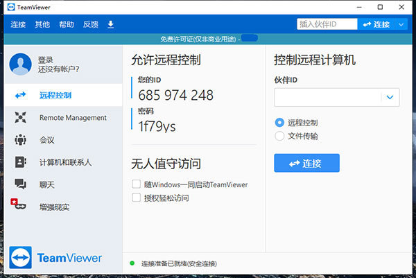 4、成功安装后,打开软件,是免费版本,会自动获得一个id号和密码;