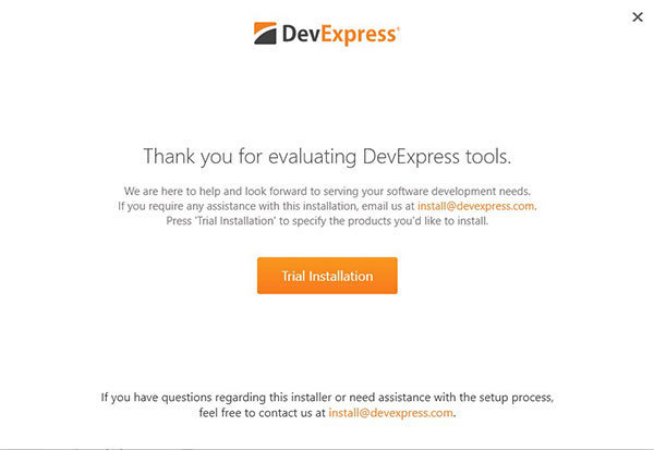 2、双击“DevExpressUniversalTrialCompleteSetup-20200430.exe”进行安装,点击trial installation;