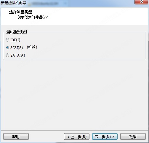 9、选择磁盘类型,我们选择推荐的SCSI类型即可
