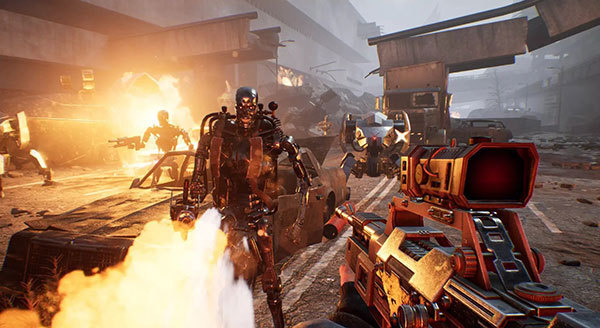 在游戏的后半段你会遇到几个喷火的T-800。只要爬到其中一个后面,朝它的燃料箱开枪就行了。