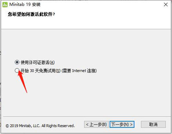 4、选择【开始30天免费试用(需要Internet连接)】,然后点击【下一步】