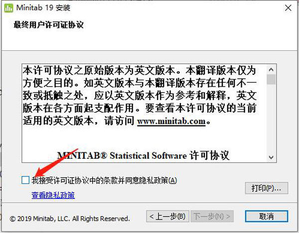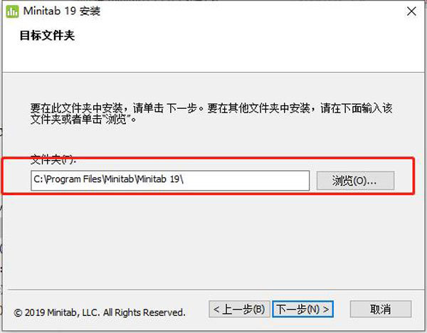 5、点击【浏览】更改安装路径,建议安装在除C盘之外的其它磁盘内,可在D盘或其它磁盘内新建一个【Minitab19】文件夹,然后点击【下一步】
