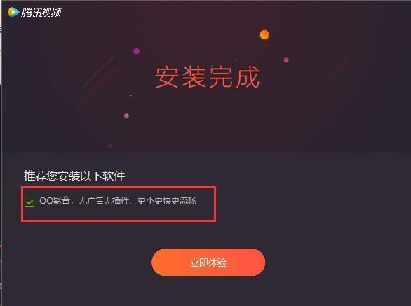 4、安装完成,取消勾选【QQ影音】,点击【立即体验】退出软件安装程序
