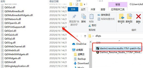 8、接下来将解压文件夹中的【davinci.resolve.studio.17b1-patch+EasyDCP.exe】复制至程序默认安装路径中