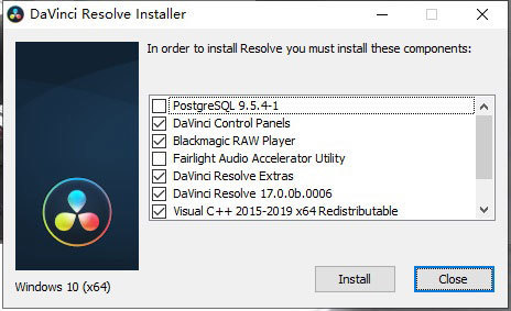 2、点击运行【DaVinci_Resolve_Studio_17.0b1_Windows.exe】开始安装原程序,在弹出框中选择install开始安装组件