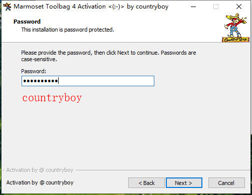 7、输入密码:countryboy,然后继续安装