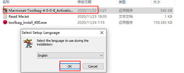4、如果软件自行启动,退出即可,以管理员身份运行Marmoset-Toolbag-4-0-0-8_Activation.exe,选择语言