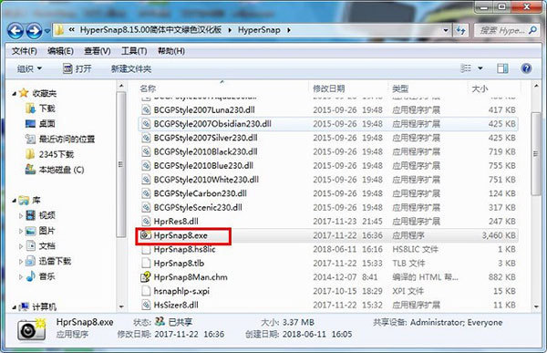 1、程序免安装,用户只需进入文件夹,双击“HprSnap8.exe”即可打开程序