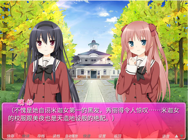时值秋令……将夏季校服更换为冬服之际,一种怀旧愁绪在璃纱心中油然而生。这是她第一天来到圣米迦勒女子学园时穿的那件校服……也是她与现在的恋人,美夜初遇时穿着的校服。虽然现在她俩正在璃纱的公寓中过着热情美满的同居生活,但她们也曾经历过只要见到彼此就会吵到海枯石烂的时刻。在璃纱看来,这一切都归咎于美夜肆无忌惮的翘课……即使如今的两人已经成为了一对恋人,频频旷课的美夜也依然故我。想起如斯往事璃纱不禁露出了苦笑,引得陪在身旁的美夜露出迷惑不解的表情。“我只是回想起了……和美夜的初遇。”那是个和煦的春日,那是个,樱花漫天飞舞的春日。那是个……她永志难忘的,与美夜相遇的春日。