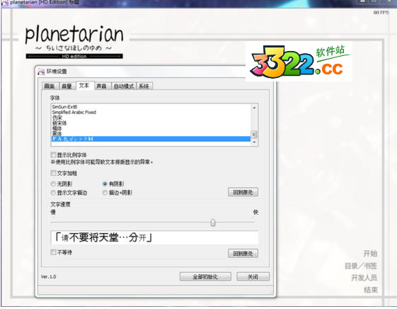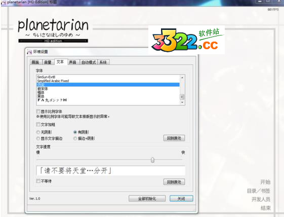 1、启动游戏,标题画面右键—》字体设定,阴影和圆滑效果都不要