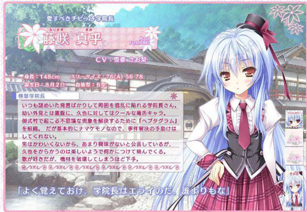 为了解决御式村所发生的不可思议现象而组建『ヘプタグラム』。但基本上都是偷懒,连事件解决都完全不帮忙。