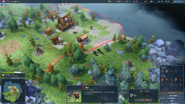 3、扩张地块需要用到粮食,粮食的话还是找农田,鹿,鱼吧,每人+5效率高。冬天粮食产出都会变低,木材消耗变高,反正冬天就是消耗资源,撑不过去就死了。第一个第二个冬天还是有危险的,尤其是刚刚花很多粮食扩张了地块,就过冬了。左下角有一个横条代表时间季节,小心冬天